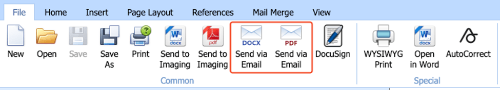 - In the File Menu, select either the .docx or .pdf option for the “Send via Email” function